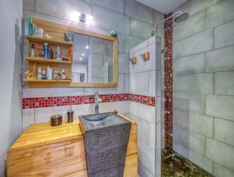 Et pour cause, équipée d’une chaudière Gaz à condensation de 2010 (DE Dietrich), de 15 panneaux solaires (6KW), et d’un poêle à bois, cette dernière demeure particulièrement économique. Des climatisations d’appoint ont été installées dans les espaces stratégiques.
