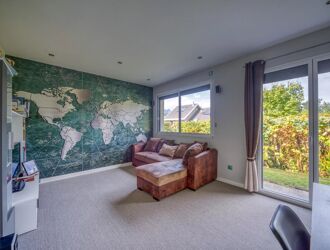 Dans un cadre mi-champêtre mi urbain, au calme, sans vis-à-vis, implantée sur un terrain de 2260 m² relativement plat engazonné et arboré, cette maison multiplie les atouts.